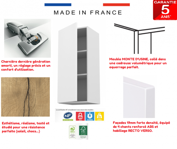 Meuble 19MM livré monté et réglé en usine. FABRICATION FRANCAISE.