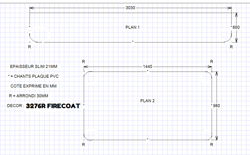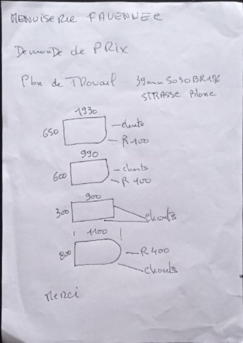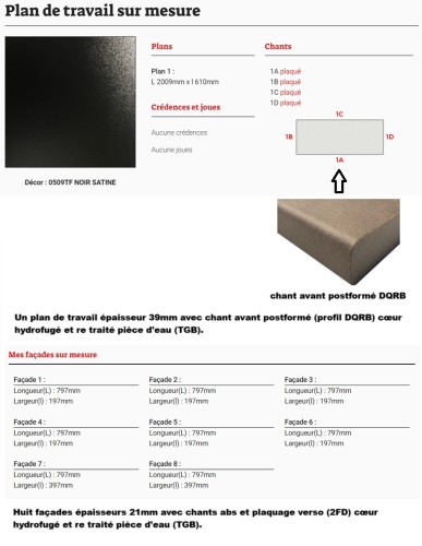 Commande plans de travail sur mesure Mme Mr Moras